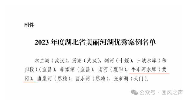 近日,湖北省生态环境厅办公室印发2023年度湖北省美丽河湖优秀案例名单全省共筛选出10个美丽河湖优秀案例,其中团风县牛车河水库入选。
