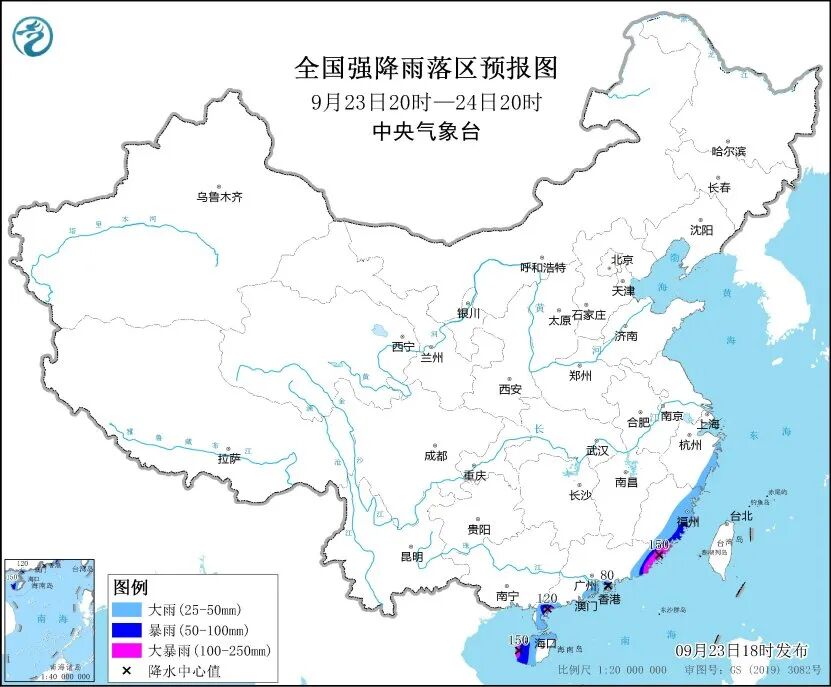 中央气象台23日18时发布暴雨蓝色预警:预计,23日20时至24日20时,浙江东南部沿海、福建东部沿海、广东东部和南部沿海、海南岛等地部分地区有大到暴雨,其中,福建南部、广东东部和西南部沿海、海南岛西部等地部分地区有大暴雨。上述部分地区伴有短时强降水等强对流天气。