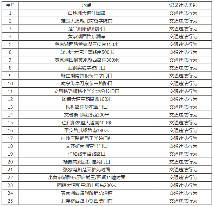 据武汉市公安局交通管理局官网消息根据道路交通安全管理需要拟新设置一批交通技术监控设备现将相关设置地点向社会公布↓↓↓
