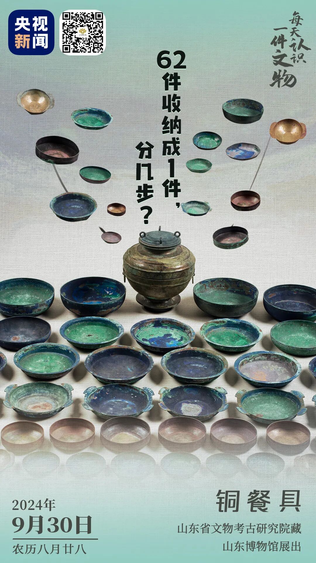 这件来自战国时期的齐国铜罐,看起来平平无奇,乾坤都在“肚子”里。铜罐外壳可以拆分变为盖子和上、下罐体三部分,里面还放着10个耳杯、10个小碟、10个铜盒、4个碗、25个盘,堪称餐具界的超级“套娃”。