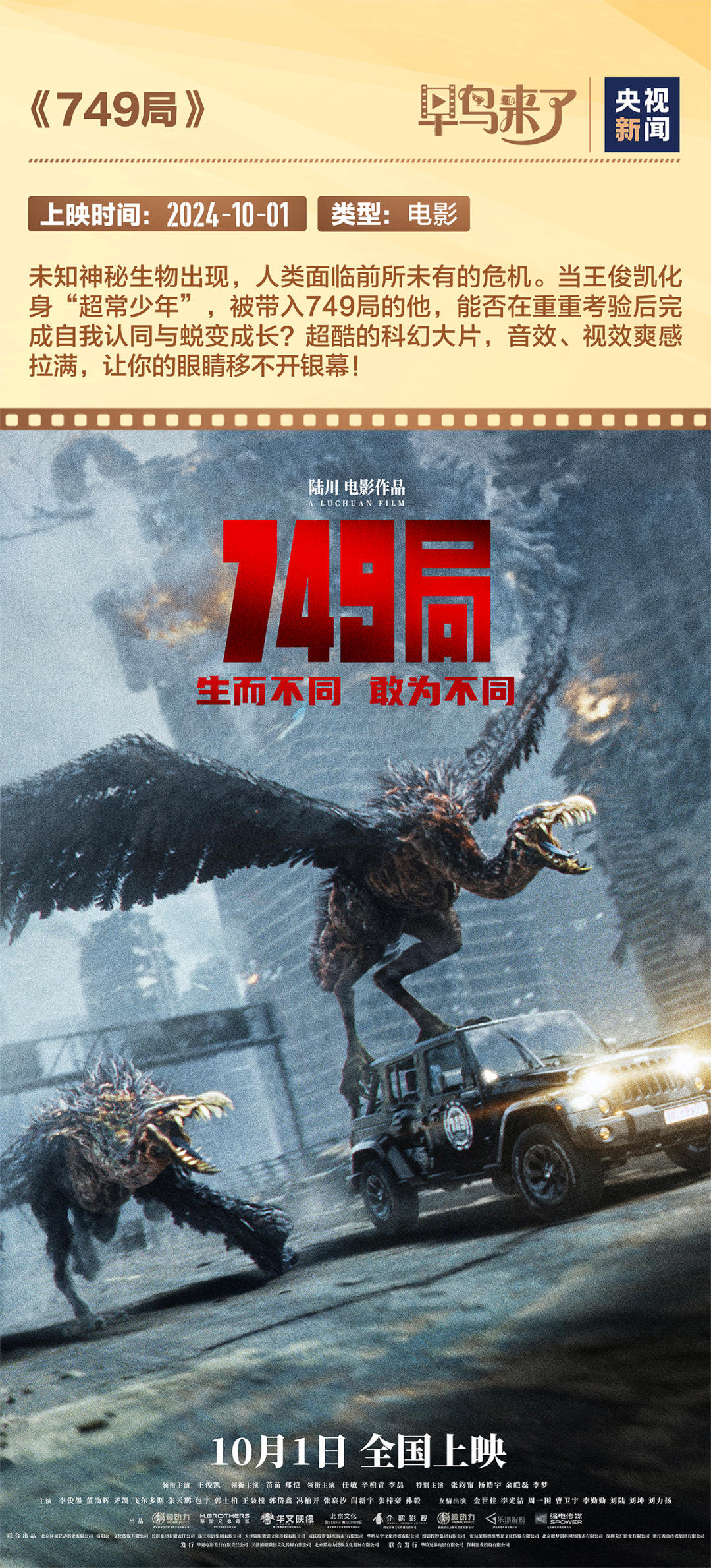 10月1日,由陆川执导,王俊凯、苗苗、郑恺主演的电影《749局》全国上映。超酷的科幻类型视效大片,别错过!
