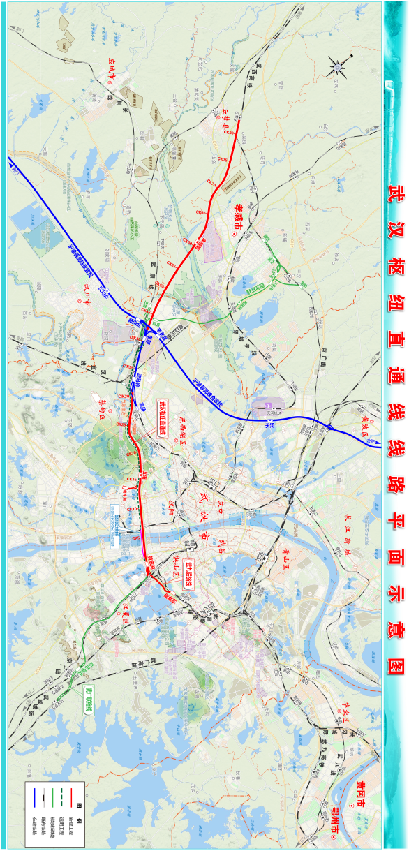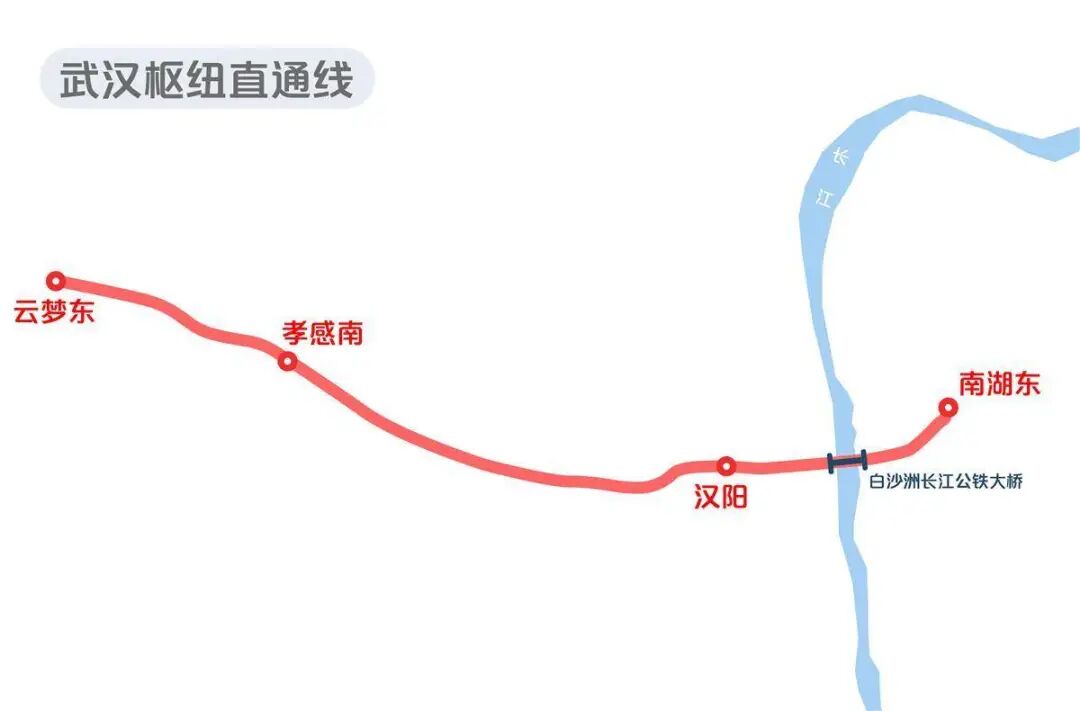 武汉枢纽直通线起自汉十高铁云梦东站,经新建孝感南站、汉阳站及白沙洲长江大桥过江,新建线路全长约80公里,项目计划建设工期5年,总投资约340亿元,是国家高铁“八纵八横”沿江通道的重要组成部分。