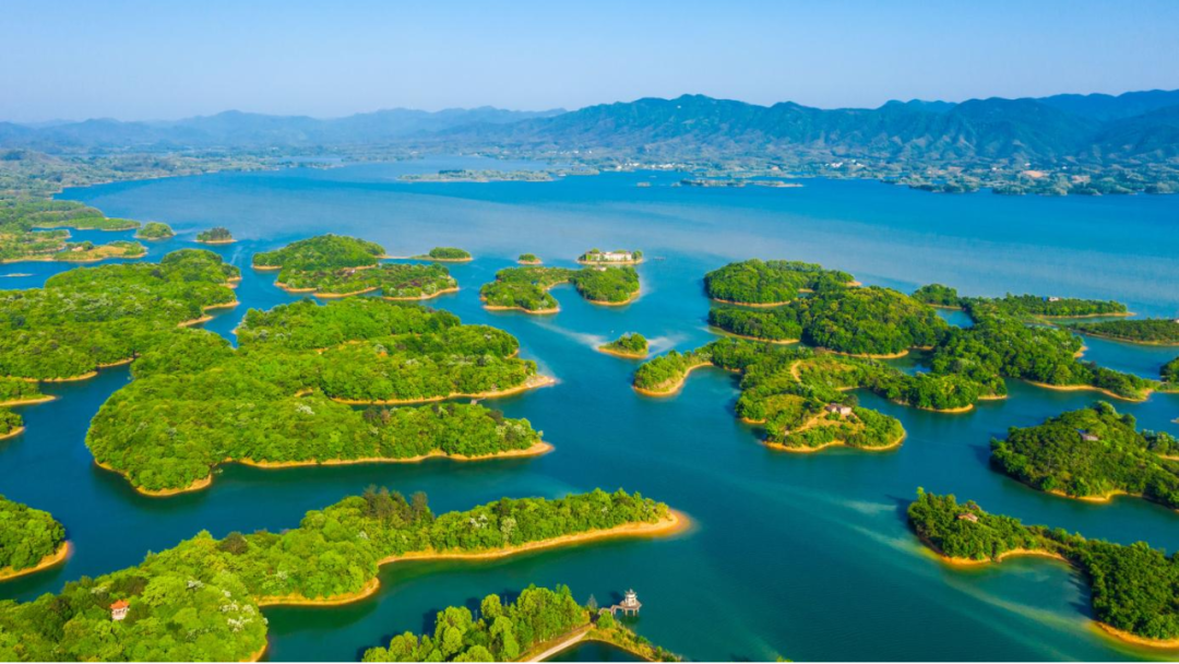 说明:空中俯瞰咸宁市赤壁陆水湖国家湿地公园,一片碧绿,沁人心脾。