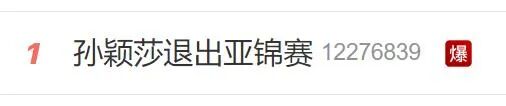 10月10日,孙颖莎发布微博,表示退出亚锦赛的单项比赛。消息一出冲上热搜第一。
