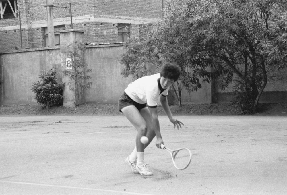 1983年9月27日,湖北省运动员余丽桥以2:0胜上海朱晓云,夺得第五届全运会网球女子单打冠军。新华社记者 杨溥涛 摄