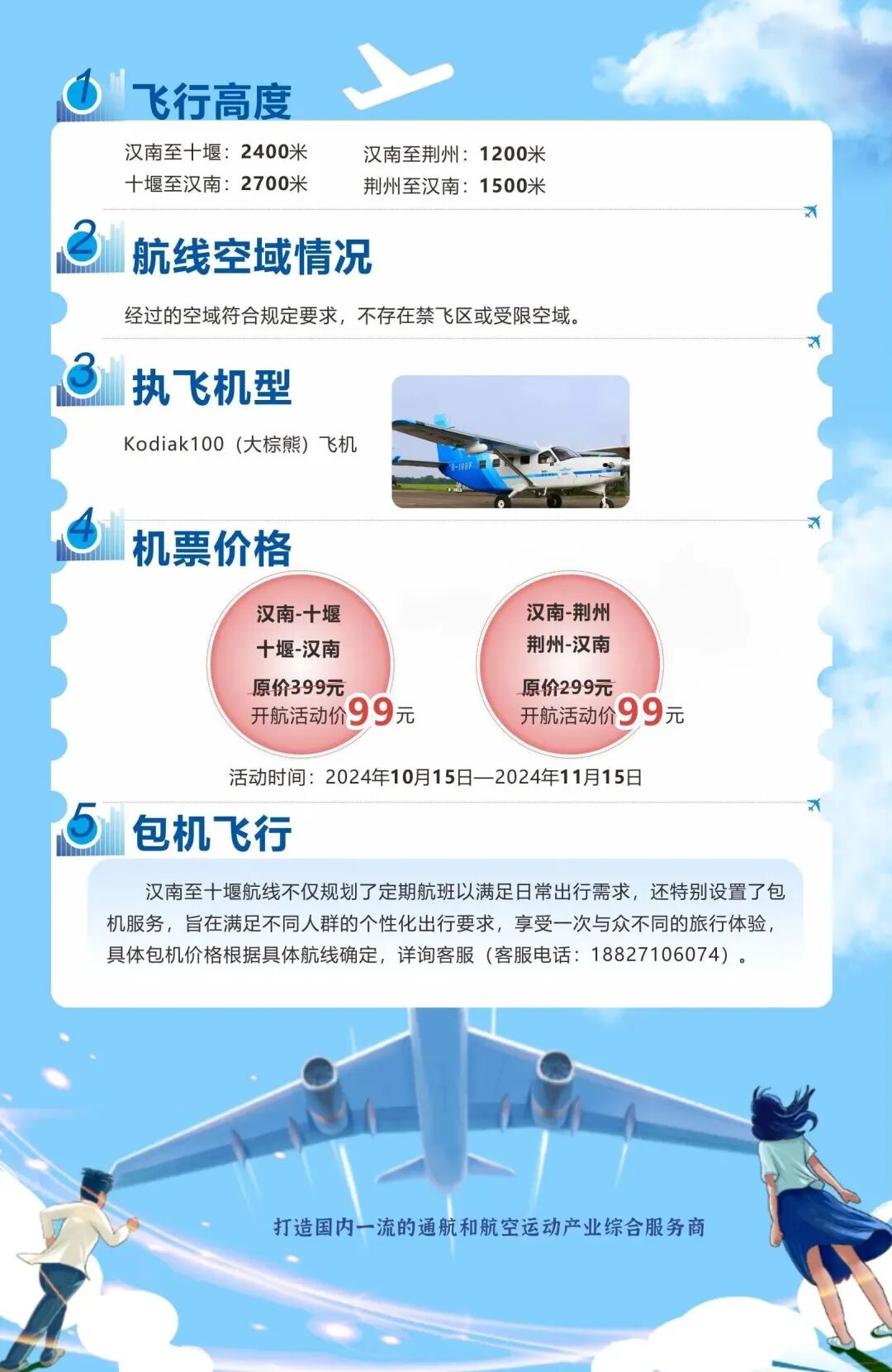 票价方面,汉南至十堰单人单次票价399元,汉南至荆州为299元,10月15日至11月15日开航期间,仅需99元。游客可通过楚天通航公众号、汉南机场公众号和航旅纵横app预订机票,下月还将陆续推出携程等多个购票渠道。