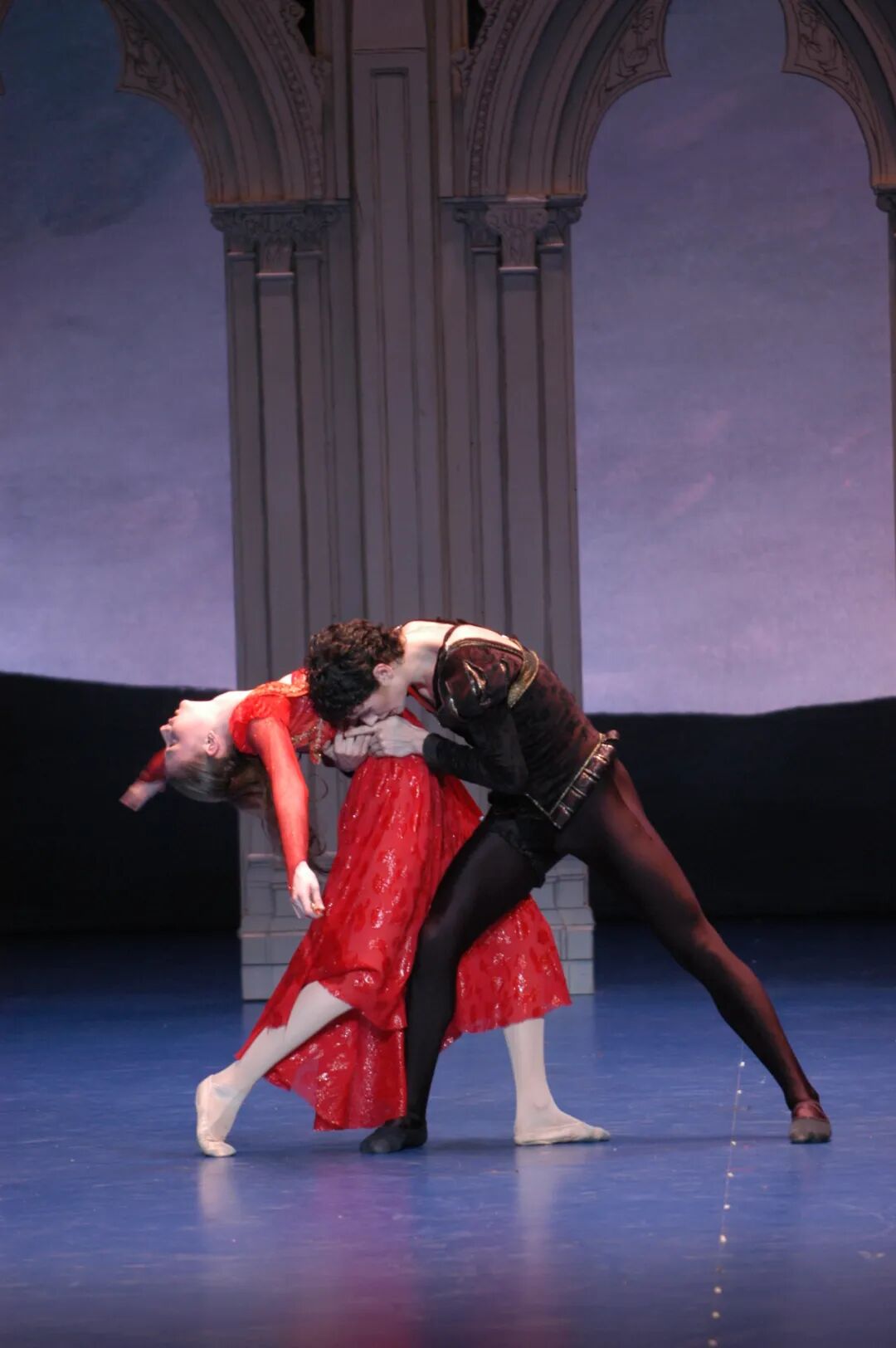 同样精彩的还有充满了诗意和深情的编舞。舞者们通过身体语言和舞蹈动作来演绎莎士比亚戏剧中两位年轻人的爱情故事。他们通过精准而优雅的舞蹈动作,将角色的情感与内心世界完美呈现。舞蹈中的抛物线动作、绕圈旋转以及优雅的芭蕾步伐都让人难以忘怀。