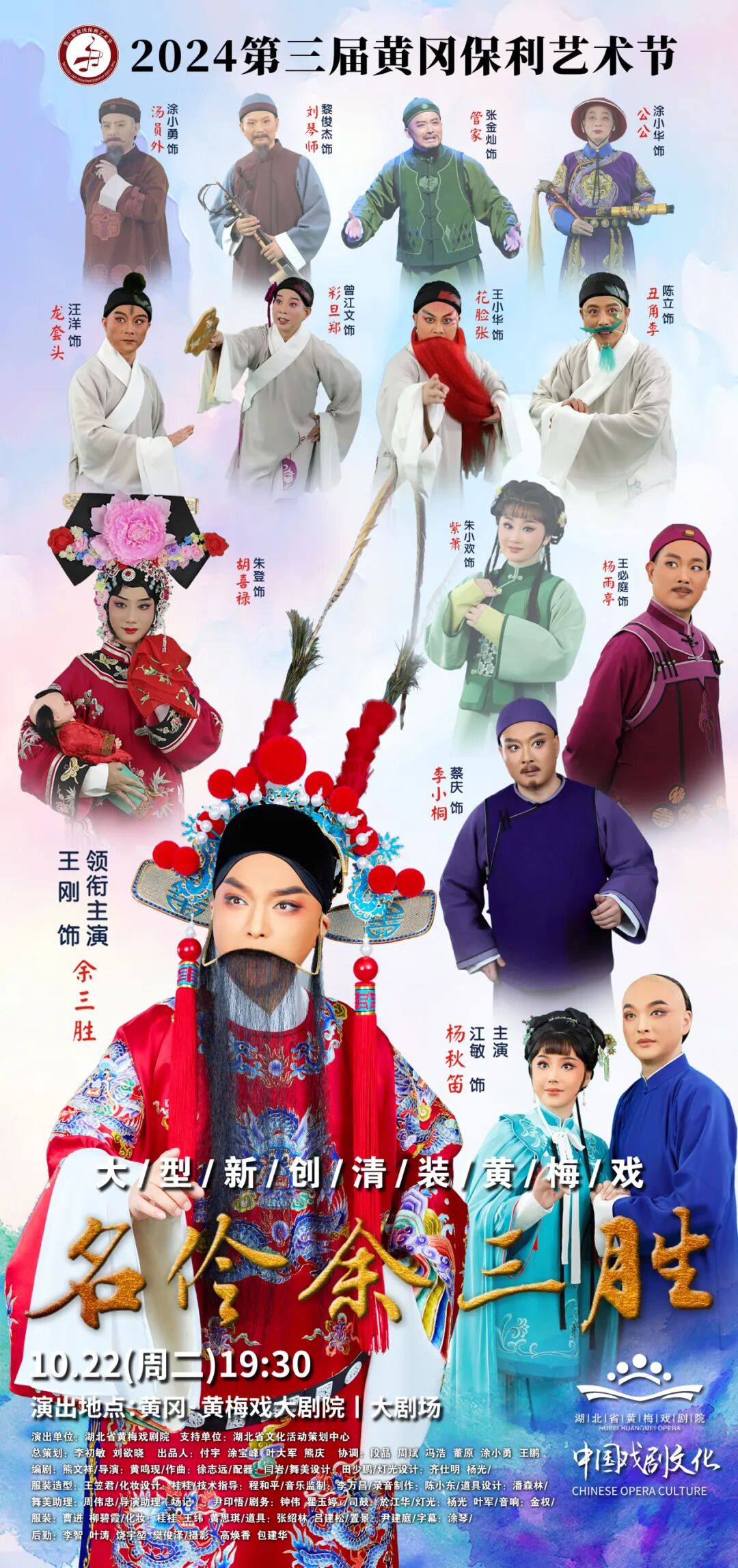 第三届黄冈保利艺术节开幕演出大型新创黄梅戏《名伶余三胜》2024年10月22日19:30即将在黄冈黄梅戏大剧院惊艳亮相敬请期待!