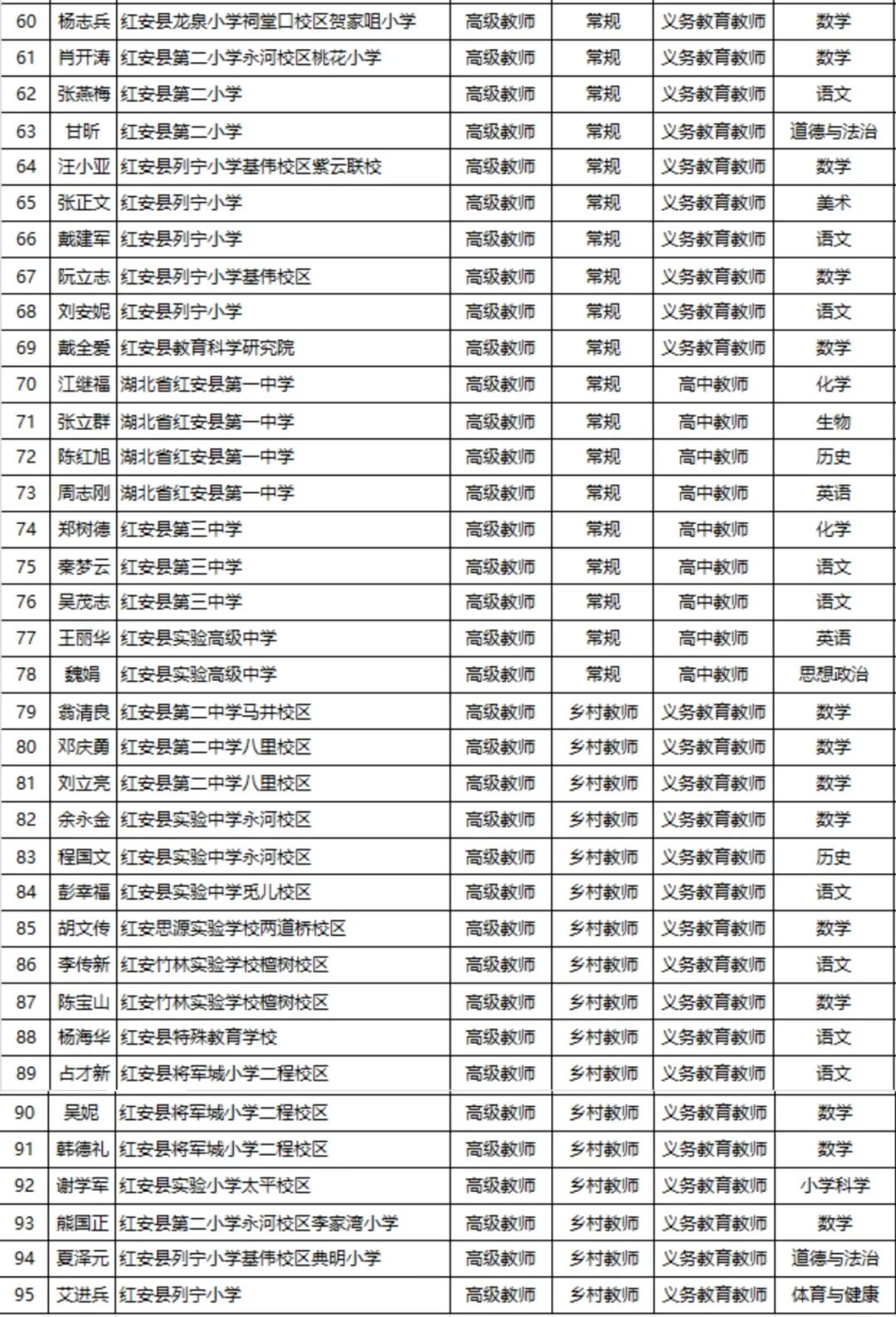 《关于红安县2024年度中小学教师系列专业技术职务评审名单的公告》