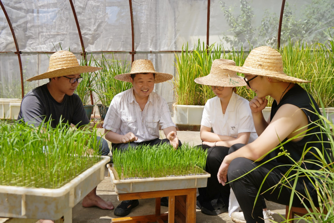 何光存教授(左二)与团队在查看秧苗“继续推进我国粮食安全事业发展,完成朱院士等老一辈科学家未竟的事业,是时代赋予我们的使命。”实践队员、武汉大学生命科学学院本科生黄龄慧说 ,“我们将追随前辈脚步,继续努力,为守护好我国乃至世界粮食安全作贡献。”