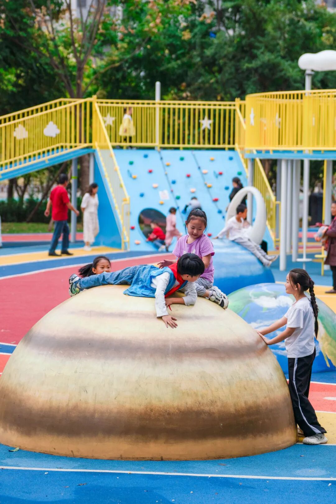 日月星辰、运载火箭、宇宙飞船、宇航员……作为宇宙探索为主题的口袋公园,该园科技元素多多。