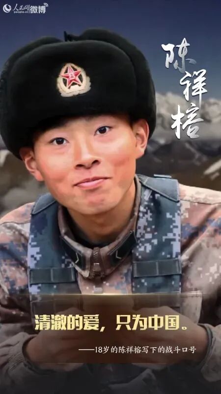 陈祥榕出生于2001年2019年9月入伍2020年6月加勒万河谷冲突中他作为盾牌手战斗在最前面毫不畏惧、英勇战斗直至壮烈牺牲那时的他,还不满19岁中央军委为他追记一等功