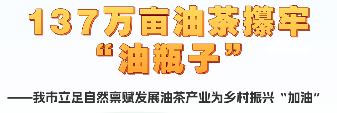 现阶段,我市发展油茶林面积已达137余万亩,现有油茶重点加工企业28家、专业合作组织274个、千亩以上经营大户500多户,建成万亩油茶小镇25个、千亩油茶村100个、百亩以上高效油茶示范基地500个。