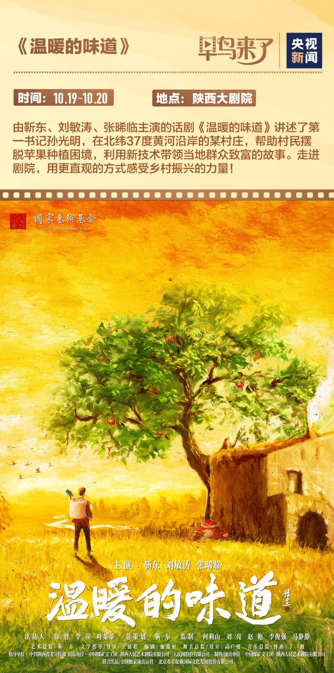 由于日照和温度的优势,北纬37度地区被誉为苹果黄金种植带……一部汇聚了靳东、刘敏涛、张晞临等演员的话剧《温暖的味道》,生动描绘了第一书记孙光明在黄河沿岸一个北纬37度小村庄里,如何利用新科技的力量,引领村民们踏上富裕之路的感人故事。走进剧院,感受这份“北纬37度的温暖”!