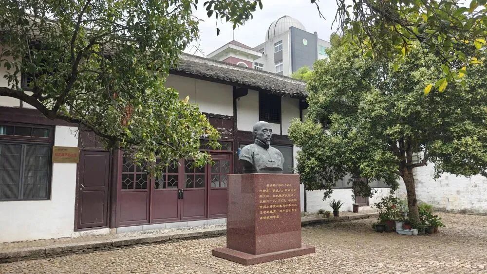 10月13日拍摄的桐城中学校园内吴汝纶铜像。新华社记者 陈诺 摄