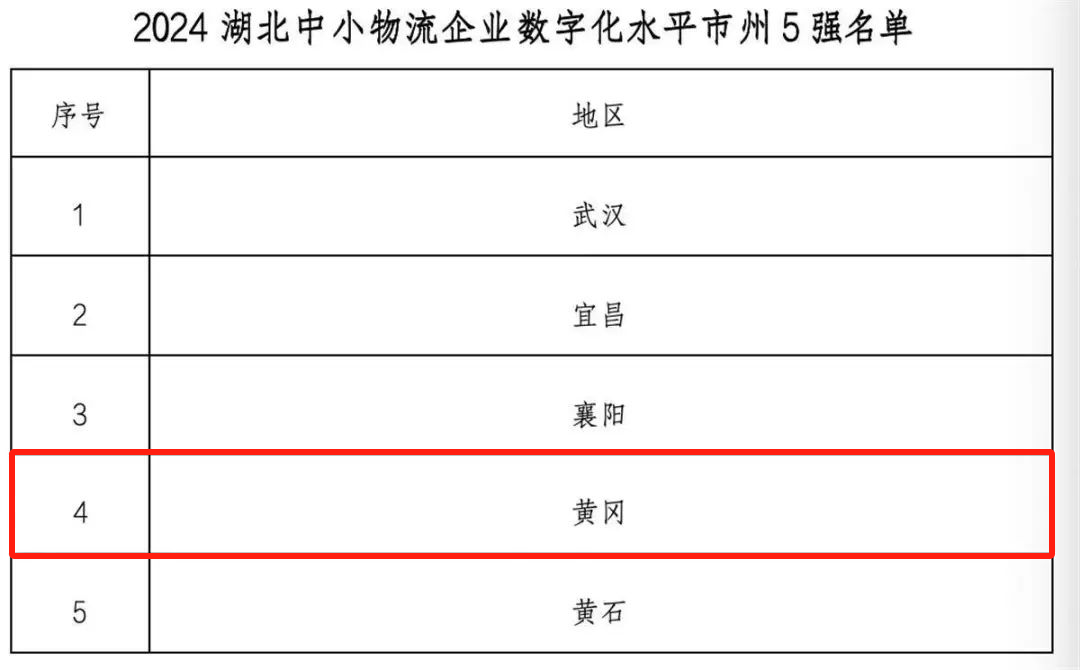 从省科技厅获悉,2024年度湖北省中小型物流企业数字化水平市州5强名单日前揭晓,黄冈榜上有名。