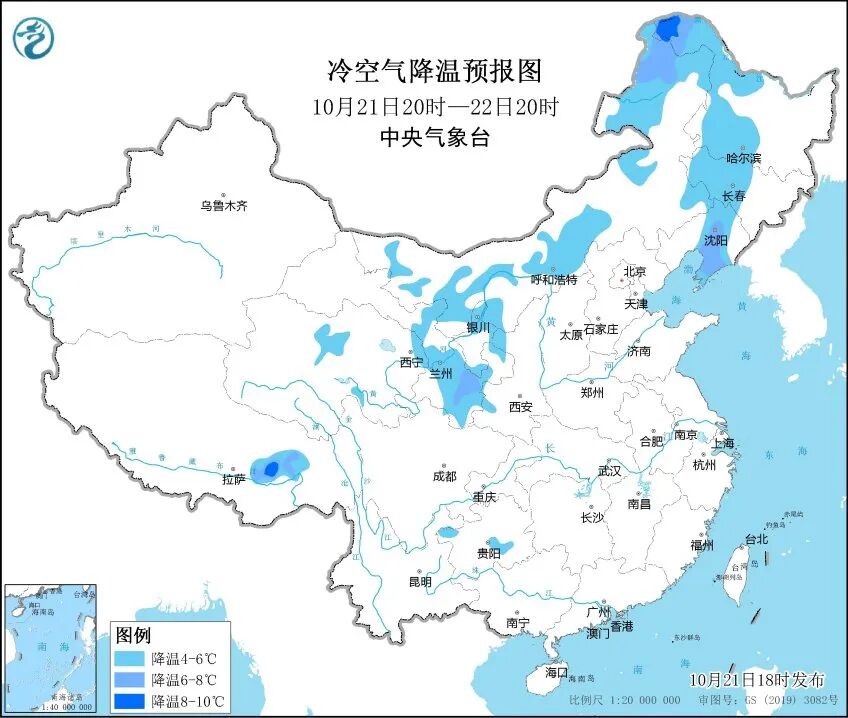 中央气象台预计,21日夜间至23日,新一股冷空气将从西北地区东部自西向东影响我国大部分地区,先后有3~6℃降温,局地降温幅度8℃以上。22日至23日白天,吉林东部、黑龙江东部有雨转雪或雨夹雪,部分地区有中到大雪,局地暴雪。