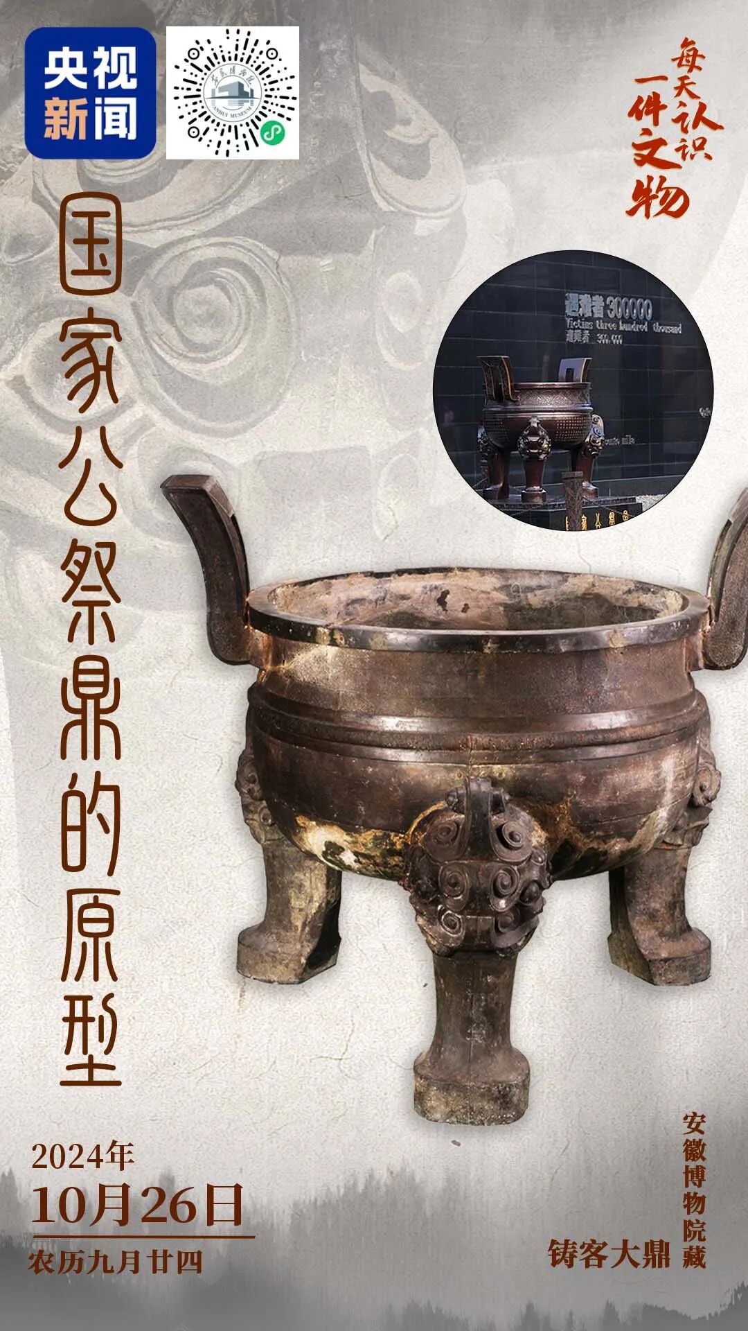 央视新闻联合全国博物馆推出文博科普产品《文博日历》,每天带你认识一件文物。现藏于安徽博物院的铸客大鼎,是楚国祈求安邦定国的重器,重达400公斤。它出⼟于安徽李三孤堆楚王墓,抗战时期颠沛流离,辗转7地,见证了中国⼈⺠历经千⾟万苦取得抗⽇战争胜利。国家公祭鼎就是以它为原型,意在“铭记历史、警示未来”。长按识别图中小程序码查看详情↓