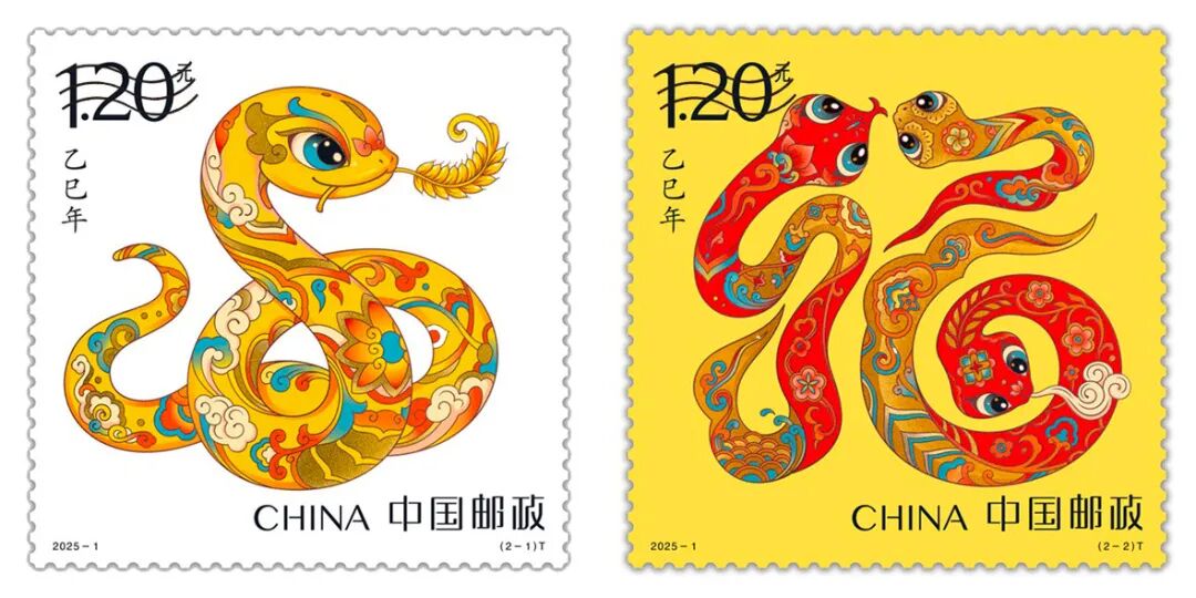 30日,中国邮政发布《乙巳年》特种邮票即蛇年生肖邮票图稿,分别名为“蛇呈丰稔”和“福纳百祥”。该特种邮票将于2025年1月5日正式上市发售。