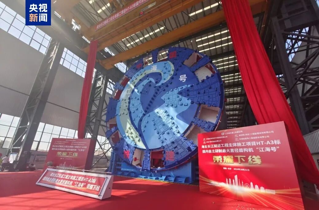 △我国自主研制的最大直径盾构机“江海号”,最大开挖直径达16.64米。