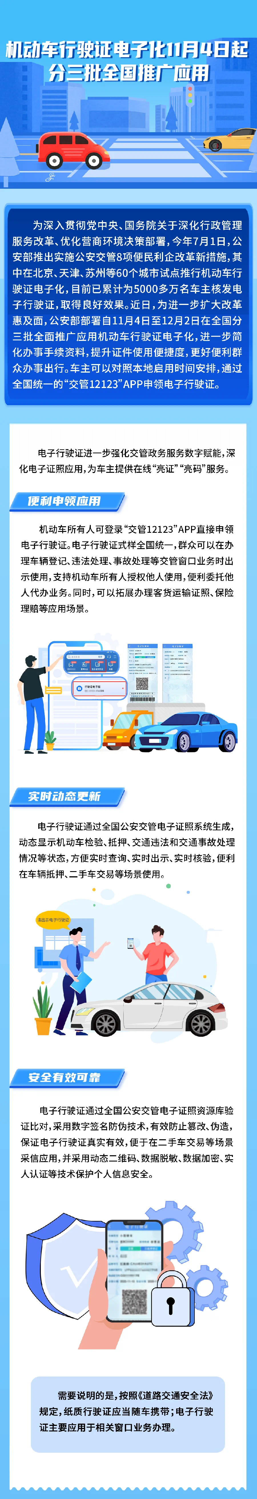 ②电子行驶证全国统一式样,统一通过“交管12123”APP申领。