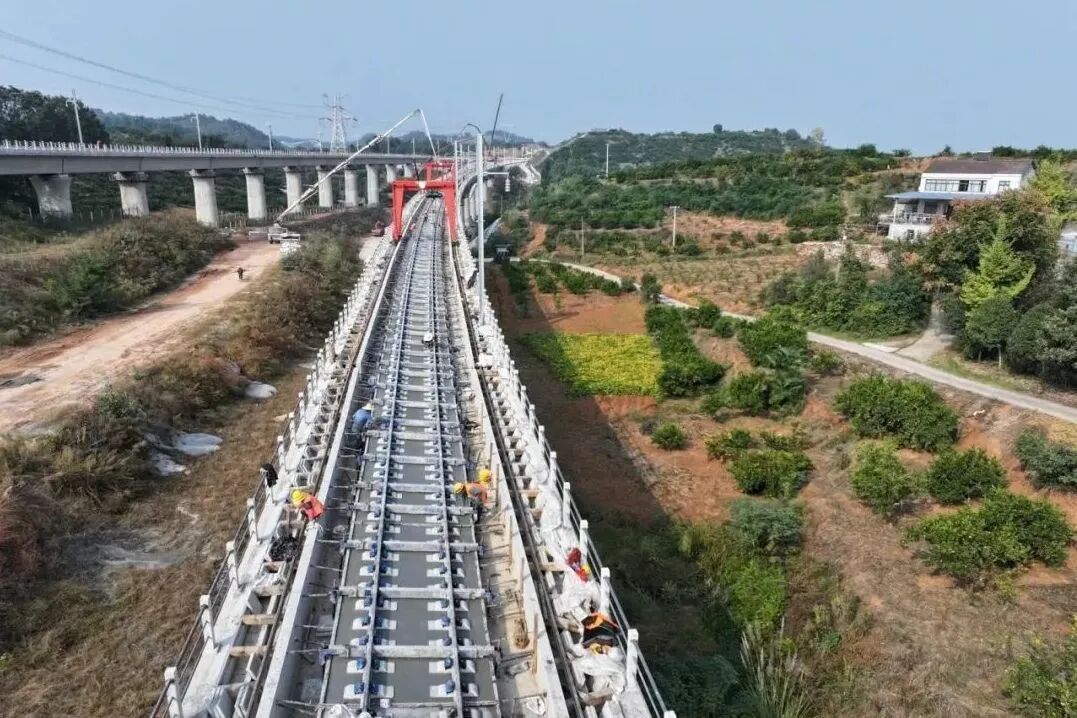 近日,沪渝蓉高铁武宜段7标项目,宜昌北站至小溪塔街道杨家榜区间的无砟轨道道床施工全部完成,标志着该段高铁线下主体工程全部完工。通车后,武汉至宜昌铁路旅行时间将从目前的2小时左右压缩至1小时左右,蕲春到宜昌铁路旅行时间只需两小时左右。