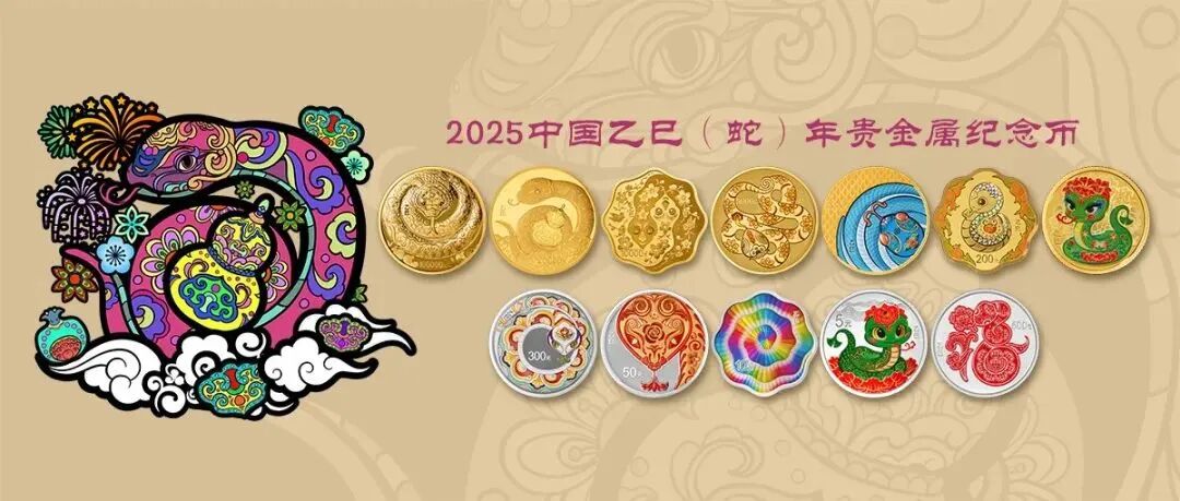 中国人民银行定于11月18日发行2025中国乙巳(蛇)年贵金属纪念币一套,一共有12枚。