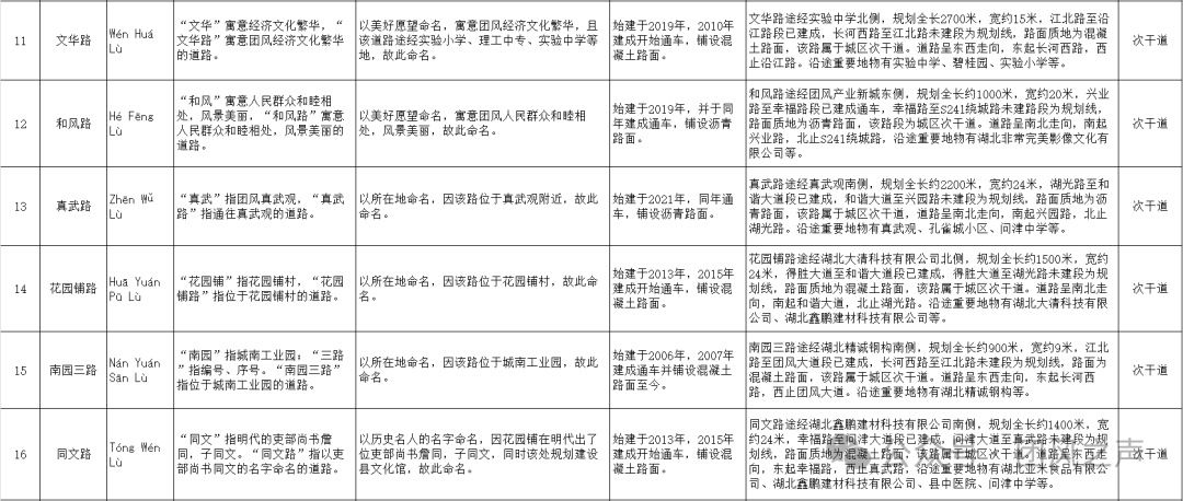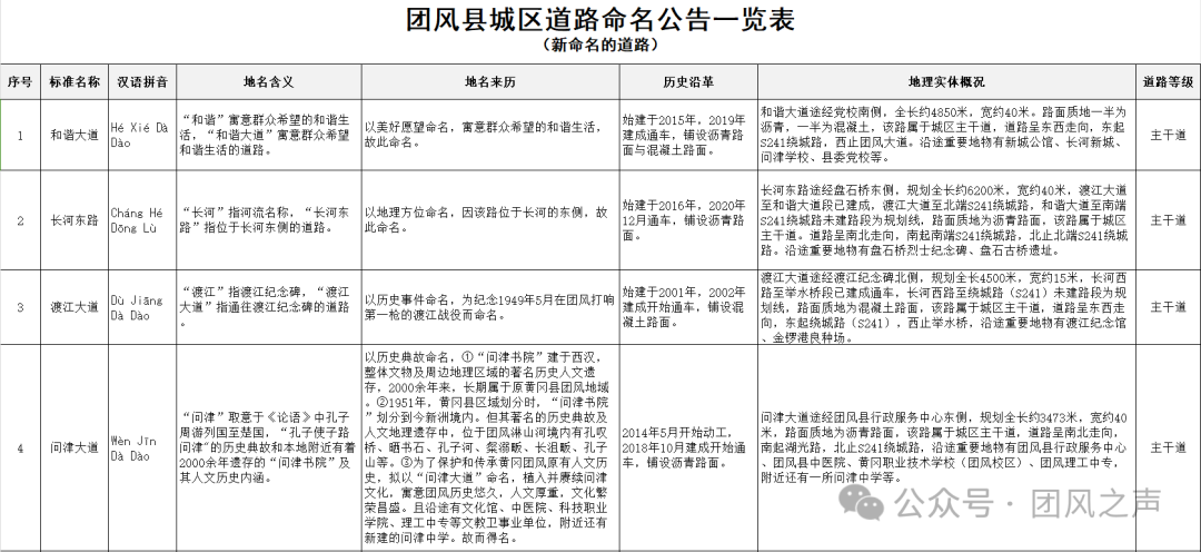 根据国务院《地名管理条例》、民政部《地名管理条例实施办法》、湖北省《地名管理办法》等有关规定,经县人民政府批准(《团风县人民政府关于团风县城区部分道路命名更名的批复》团政函〔2024〕62号),下列名称为标准道路名称,准予使用,特此公告(后附件)。