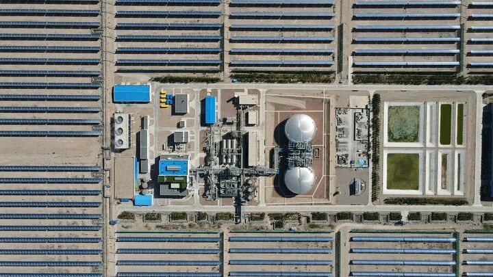 这是我国第一座、全世界第三座投入商业化运行的熔盐储能塔式光热电站。