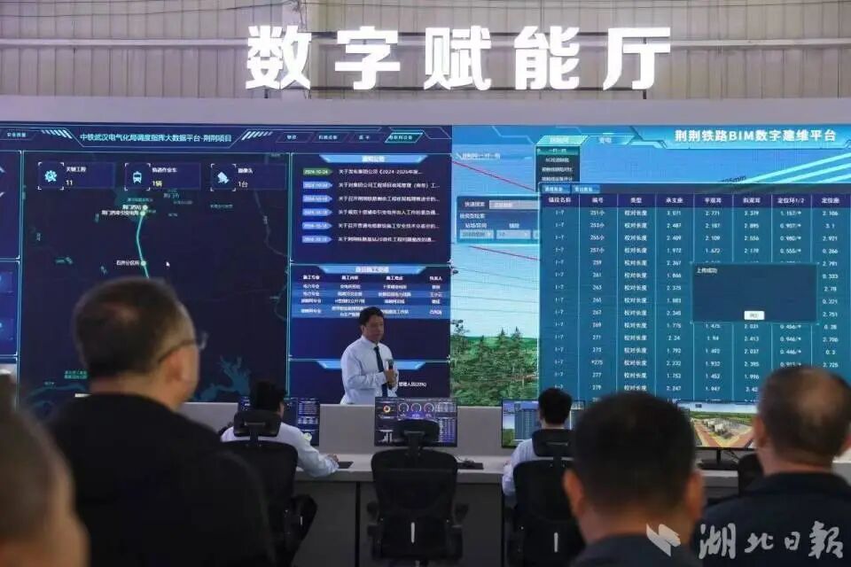 在荆荆高铁项目,中铁武汉电气化局打通设计、施工、运维之间的“堵点”,实现了从施工准备、工程测量、计算修模、预制预配、安装调整、试验检测、交付运营等七个阶段全过程的数字贯通。
