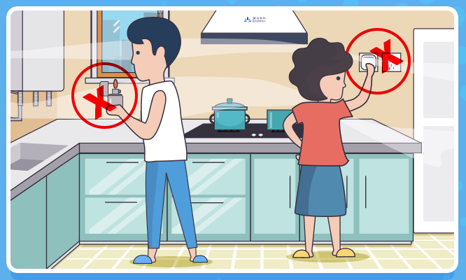 燃气泄漏后切记不要在室内开关任何电器,如开灯查验、打电话求救等,以免产生火花引起爆炸。