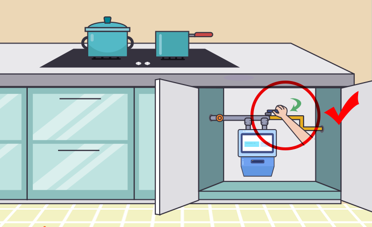 当出现燃气泄漏时,在确保人身安全的前提下,需要立即关闭燃气阀门,切断气源。