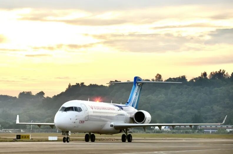 C909飞机自2016年投入商业运营以来,已累计交付150架,安全载客超1700万人次。中国商飞持续推进产品改进优化,不断提升C909飞机性能、机组操作体验和客舱舒适性。如今,C909飞机可实现多种客舱布局,包括78座两舱、90座全经济舱、95或97座高密度经济舱等;具备良好的短窄跑道、高寒、高温、高原等机场起降性能和抗侧风能力,对我国边疆以及东南亚、非洲等海外区域的运营环境具有较强的适应性。C909飞机适宜依托支线机场或次枢纽机场构建航线网络,为枢纽机场提供运力补充。此外,C909飞机还可使用最高50%掺混比的SAF燃料进行商业飞行,满足客户多样化的使用需求。