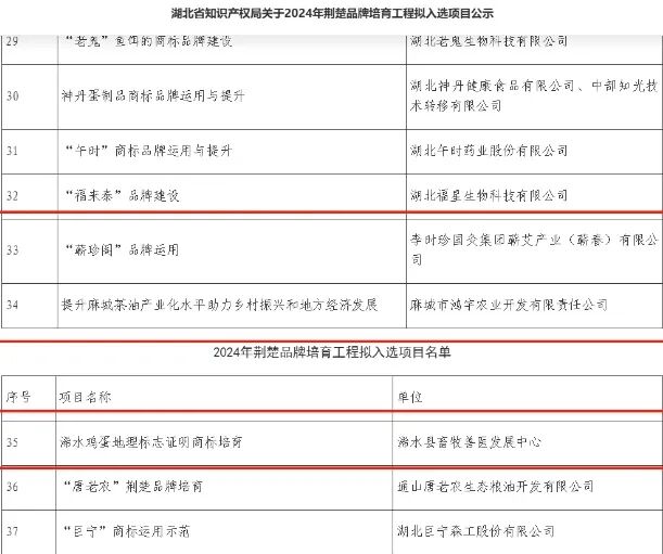黄冈3项目入选2024年荆楚品牌培育工程项目公示