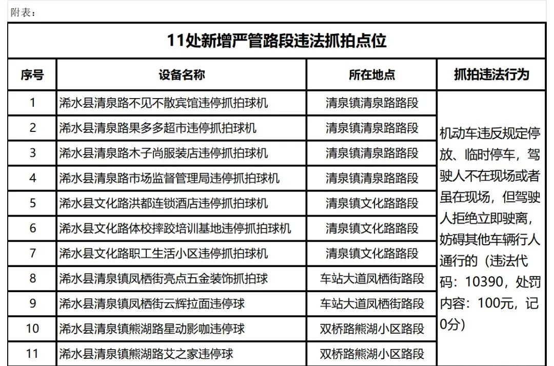 为确保浠水县道路交通安全畅通有序,提升道路通行效率,规范行车秩序,预防和减少交通事故的发生,浠水县公安局交通警察大队对11处(设备信息详见附表)新增违停抓拍电子警察设备公示。