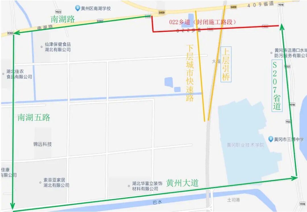 燕矶长江大桥及连接线上层为高速公路、下层为城市快速路。现有下层城市快速路与黄州区022乡道(南湖路与城南路)“十字交叉”,因城市快速路需跨一队港中桥、路基及路面施工,影响022乡道(南湖路与城南路)过往车辆正常通行,因此022乡道(南湖路与城南路)需要实行全封闭施工,为保障施工安全。现决定于2024年11月20日至2025年4月30日进行全封闭施工。封闭期间,请市民提前合理规划出行路线,施工结束后将第一时间恢复交通,造成不便敬请理解与支持。