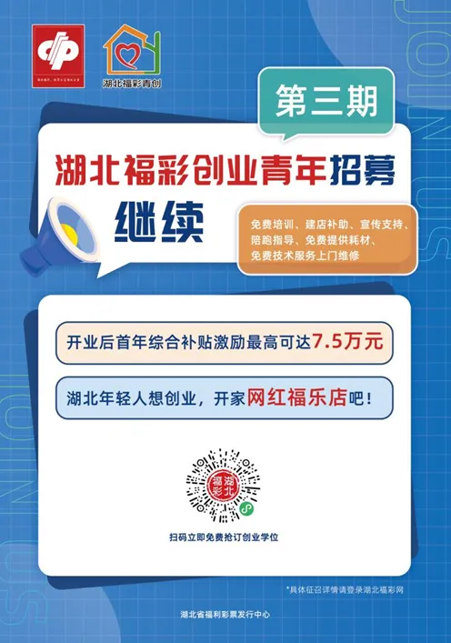 现第三期招募已经开始,还有部分学位火爆抢定中,预定11月26日开班,扫描二维码填写相关报名信息即可报名,请已报名的学员留意接听湖北福彩96590客服电话,安排好为期4天的培训学习时间。培训不收取任何费用,交通和部分食宿需学员自理。赶快报名开启福彩创业之路吧!