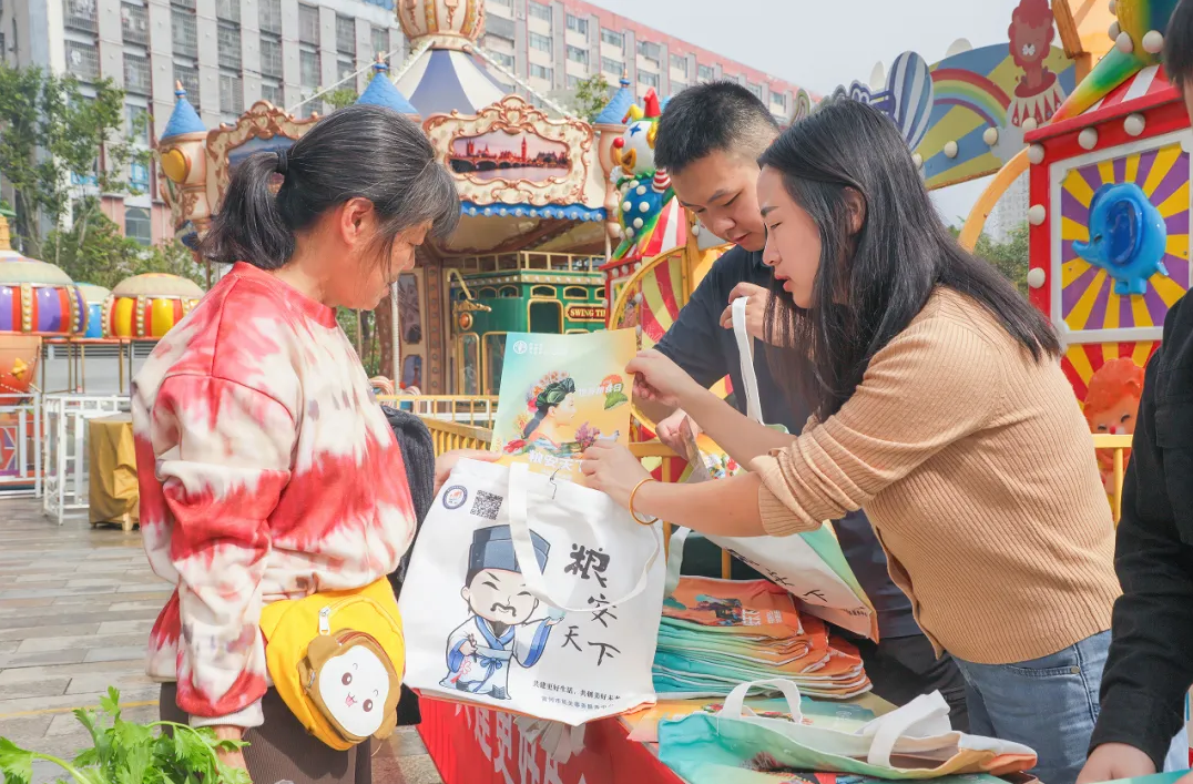 △10月16日,在第44个世界节粮日到来之际,黄冈市机关事务服务中心工作人员在居然之家黄商超市入口处张贴“爱粮节粮”宣传海报、发放节约粮食倡议书、赠送主题帆布袋,吸引市民热情参与活动。