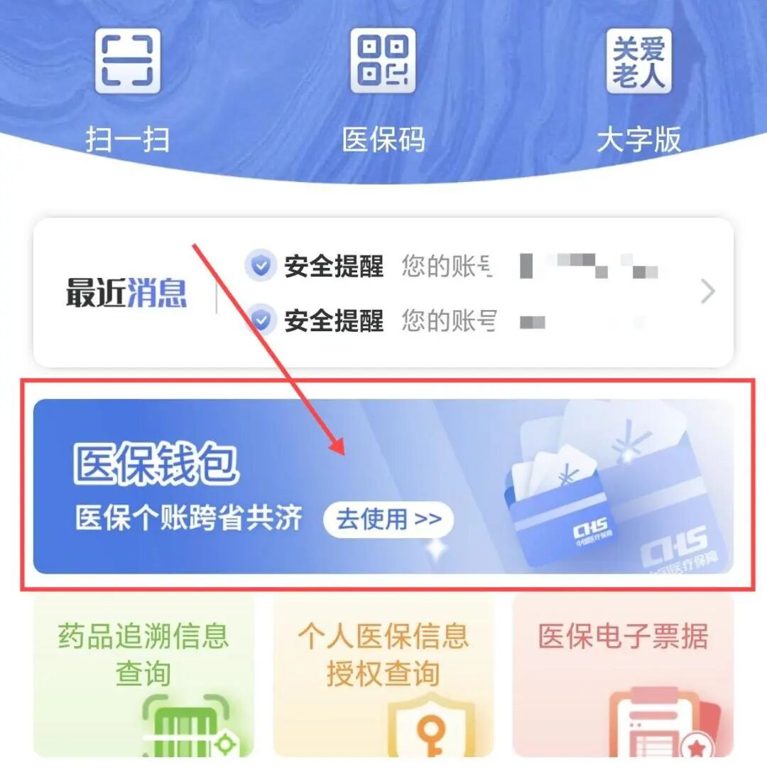 登录后,首页点击进入【医保钱包】专区。