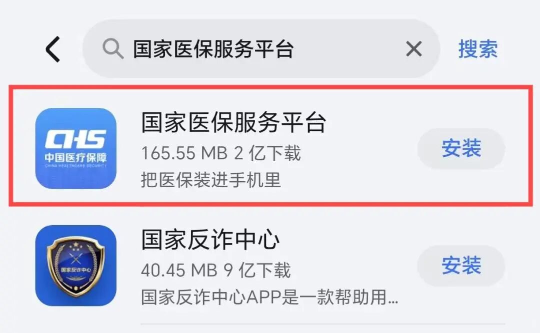 在手机应用商店中下载国家医保服务平台APP。