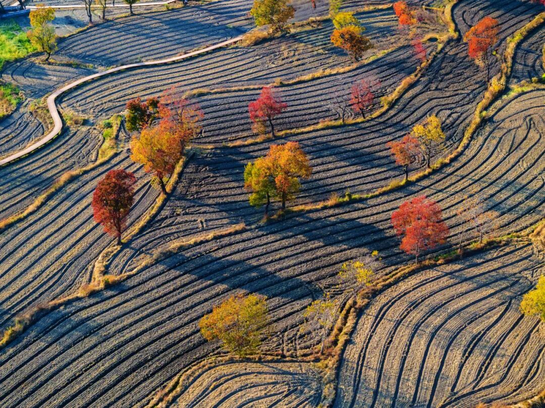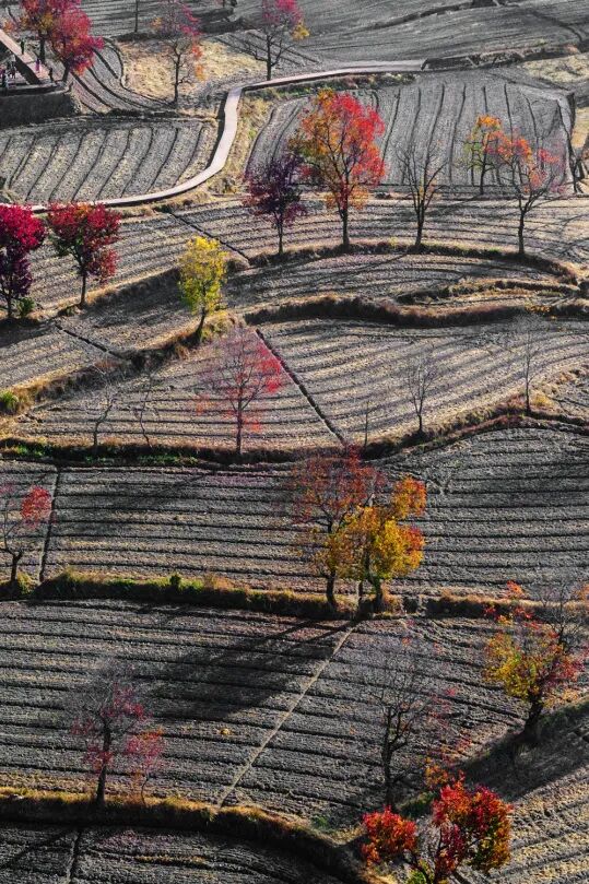田野中的乌桕树更是别有一番风味。它们被青山环抱,在广阔的天地间自由地生长,多彩的树叶交织在一起,为秋天的田野增添了几分生机与活力。