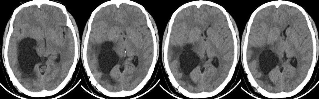 术后第二天,患者头痛、恶心症状消失,肢体活动恢复正常。复查头颅CT再次确认分流管位置到达虚拟现实预定位置,颞角较术前明显缩小。3天后,患者顺利出院。