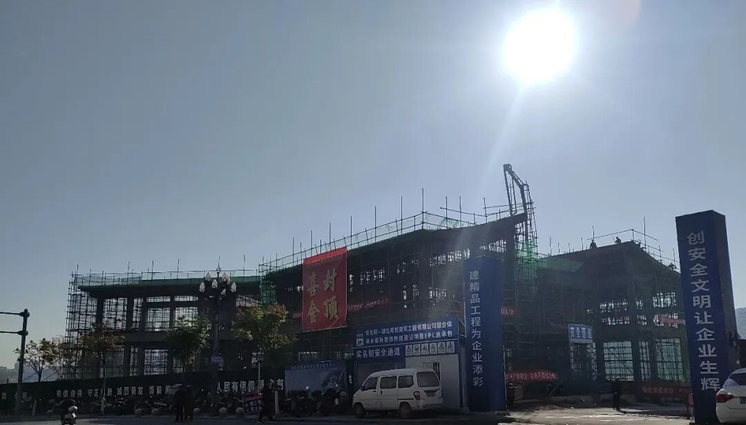 12月2日,随着南侧顶楼混凝土的浇铸完工,浠水县博物馆新馆项目取得了开工来重要的阶段性成果——主体结构顺利完工。