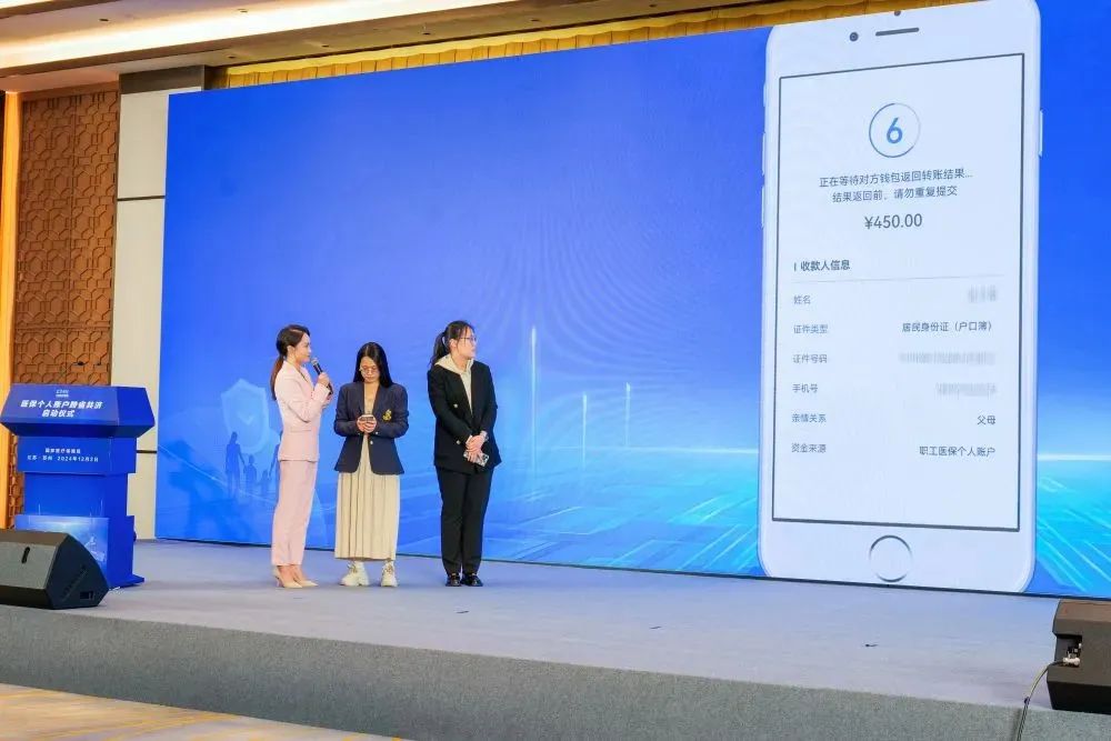 医保个人账户跨省共济启动仪式现场,苏州市市民展示跨省共济操作流程。(江苏省医保局供图)