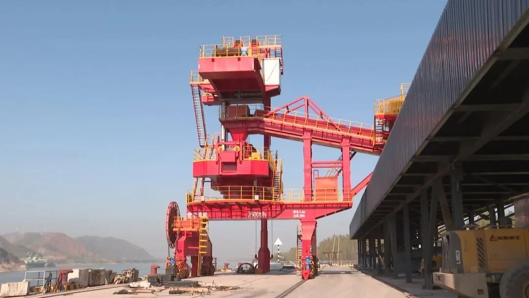 在武穴港田镇港区马口作业区富强散货码头工程现场,各类主体工程已经建设完工,工人正在对码头平台部分附属设施进行收尾施工,预计在12月份可完成所有设备的联动调试。