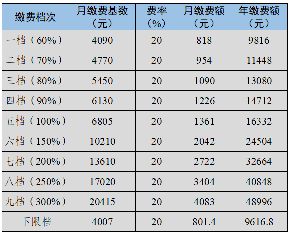 2024年度(2024年7月1日至2025年6月30日)我市灵活就业人员养老保险缴费档次划分如下: