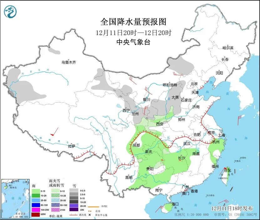 中央气象台预计,11日20时至12日20时,内蒙古中部、新疆南疆山区、甘肃大部、宁夏南部、陕西大部、山西、贵州东部等地部分地区有小雪或雨夹雪,局地有中雪;贵州东部等地高海拔地区局地有冻雨。
