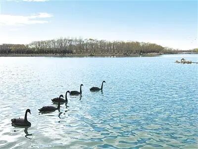 黑天鹅一家在北京团城湖调节池“落户”(北京市水务局供图)
