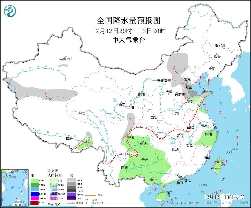 中央气象台预计,12日20时至13日20时,内蒙古中部、河北西北部和东部、北京、天津、山东北部和东部、甘肃南部、川西高原东部、新疆南部等地部分地区有小雪或雨夹雪,部分地区有中到大雪。