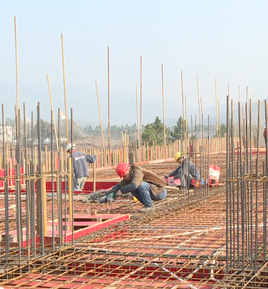 12月12日,记者在金盆湾农康旅融合示范园项目现场看到,工人们分工明确,有的在拧紧螺丝,有的在钉牢模板,彼此默契配合,现场呈现一片繁忙景象。